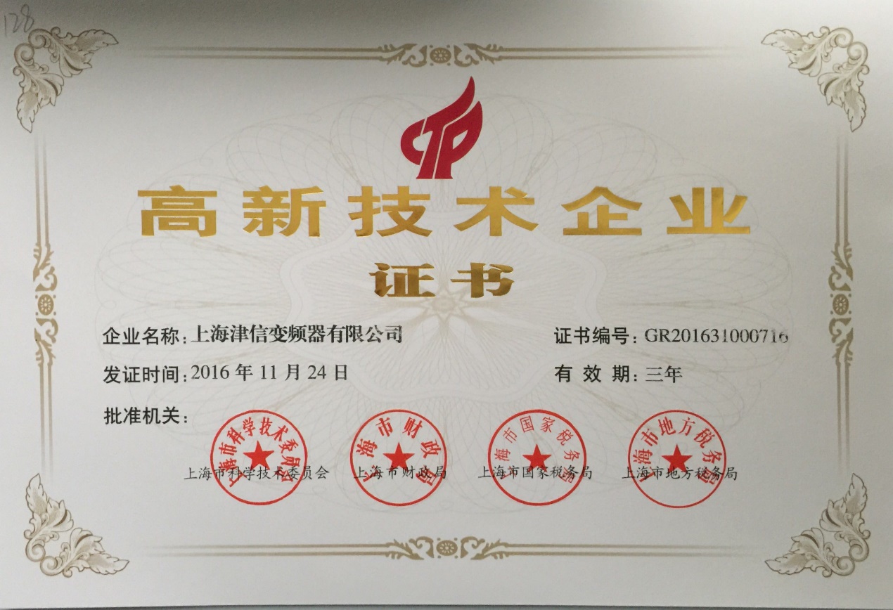 近日,我公司順利通過上海市科學技術委員會、上海市財政局、上海市國家稅務局和上海市地方稅務局等四部門的聯合評審驗收,被認定為“國家高新技術企業”,並獲頒榮譽證書。