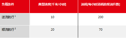 1在順流及輕載狀態下,Goblin號貨船將隻啟動一台發動機,推進器由電驅動係統驅動。這種狀態代表了60%的運營狀態。