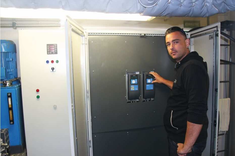 引擎室內安裝了一個配備了 丹佛斯VACON® NXP Liquid Cooled Drives 的新總控製板。為了在航行時不再針對船舶的 50 Hz 船上電網運行一個單獨的發電機,他們還將一個 VACON® NXP MicroGrid 逆變器構建到了配電盤中。此設備的目的是為了將新發電機的可變頻率轉換為固定的 50 Hz 潔淨船舶電網。與以較低的燃料效率以低荷載運行一個柴油發電機相比,這樣具有高得多的燃料效率。