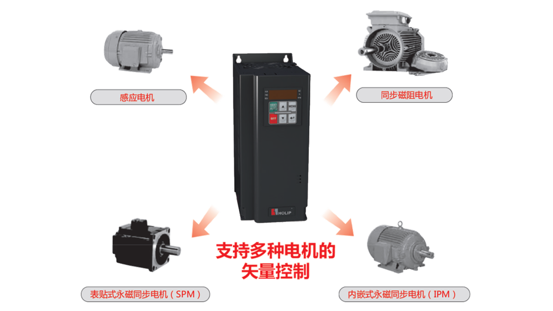 支持感應電機、永磁同步電機和同步磁阻電機的VVC+矢量控製。