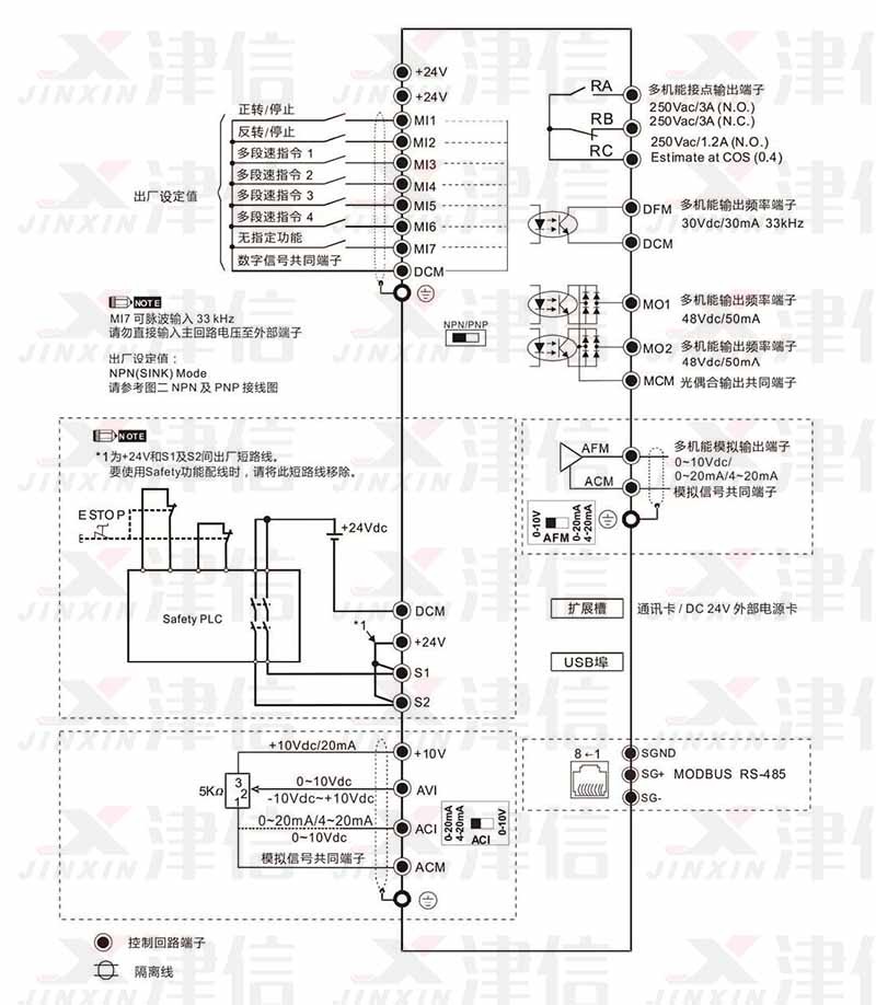 打開變頻器上蓋後,露出各接線端子排,檢查各主回路電路及控製回路電路之端子是否標示清楚及接線時注意以下各項說明,幹萬不要接錯線: