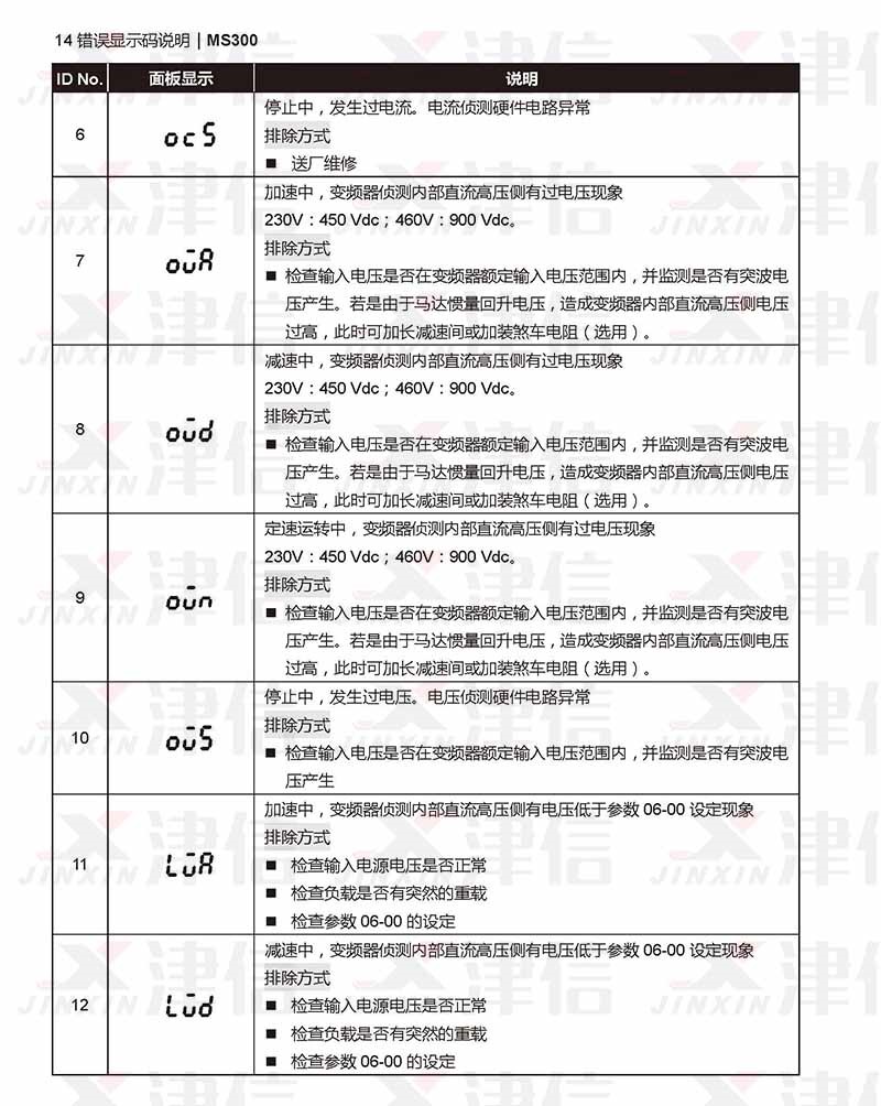 二、台達MS300變頻器OCS,OUA,OUD,OUN,LUR,ous,lud故障代碼