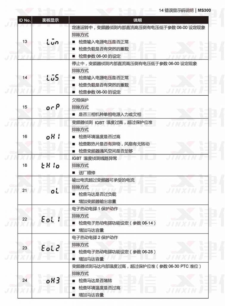 三、台達MS300變頻器lun,lus,th1o,ORP,OH1,OL,OH3,EOL1,EOL2故障代碼