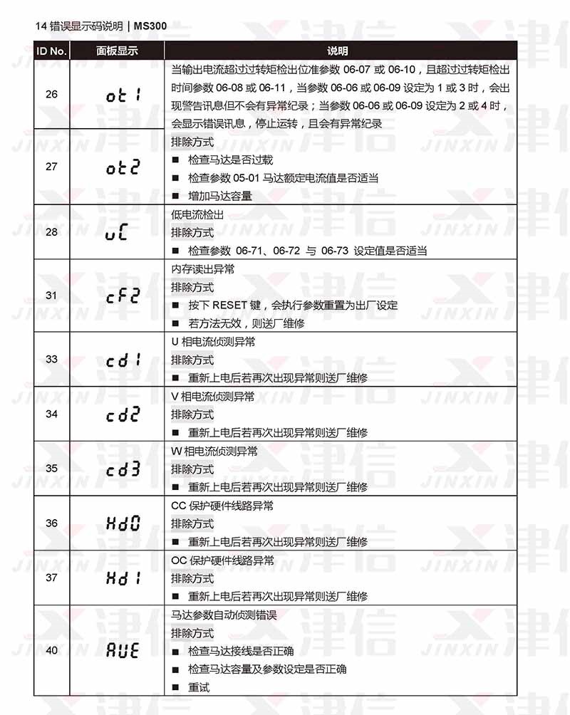 四、台達MS300變頻器ot1,ot2,uc,cf2,cd1,cd2,cd3,hd0,,hd1,aue故障代碼