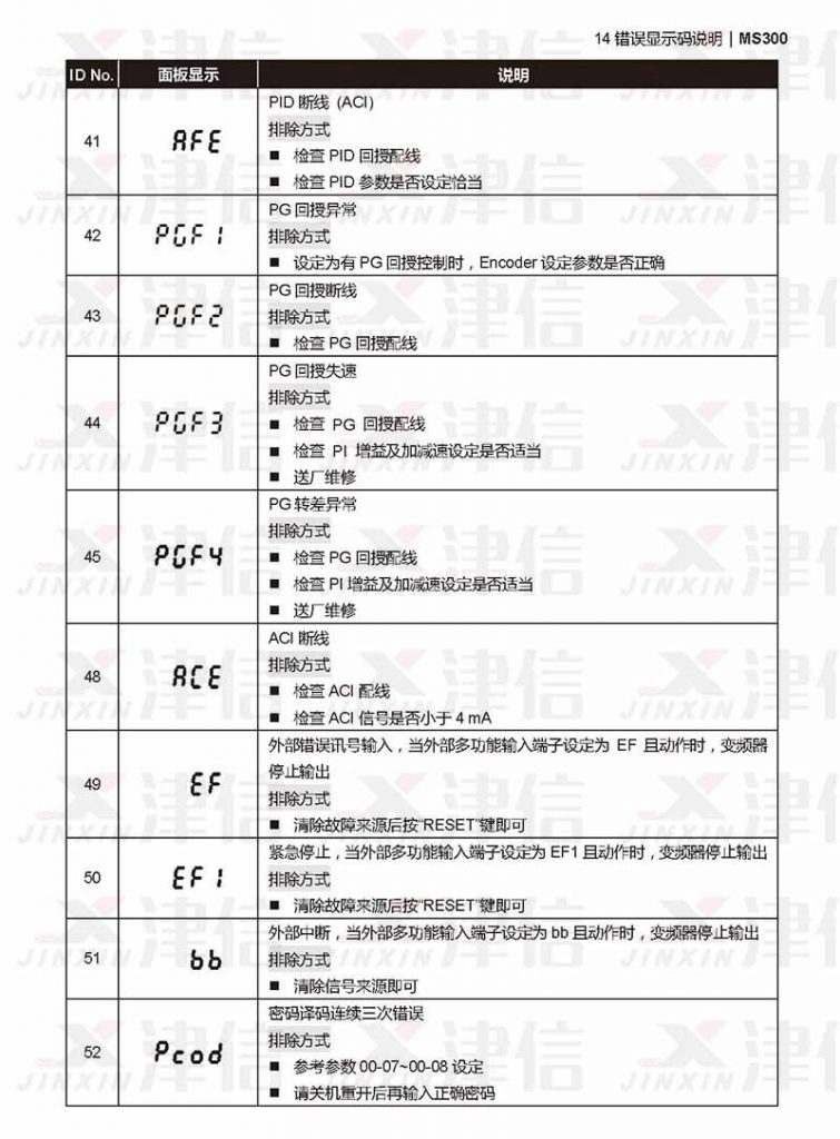 五、台達MS300變頻器EF,AFE,PGF1,PGF2,PGF3,ACE,EF1,BB,PCOD故障代碼