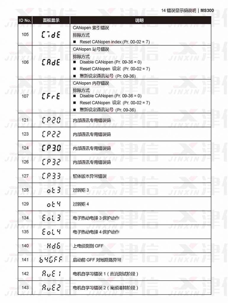 九、台達MS300變頻器c7de,cade,cfre,CP20,cp22,cp30,cp32,cp33,ot3,ot4,EOL3,eol4,hd6,AUE1,aue2