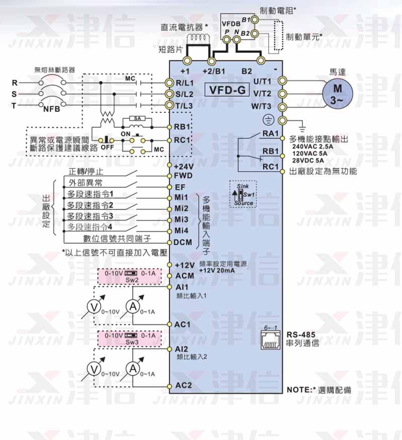DELTA台達VFD係列包括VFD-B,VFD-E,VFD-G,VFD-L,VFD-M,VFD-F,VFD-V,VFD-S,VFD-VE,VFD-VJ等多係列變頻器,其接線圖大全如下:
