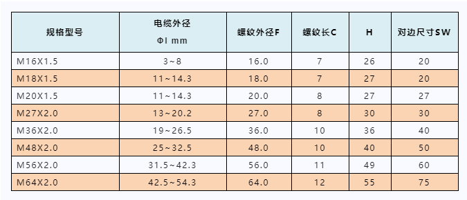 電纜填料函推薦采用船用電纜TJ型防水填料函和相應規格尺寸的GMP尼龍螺母,其中TJ型夾緊式填料函采用黃銅鍍鎳外殼和矽橡膠芯套,能夠滿足IP68防護等級,適用於船舶、造船行業的使用標準。GMP尼龍螺母可以工作於-40℃至100℃,能滿足對電纜線徑範圍在3-90mm的緊固和密封。