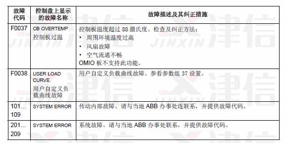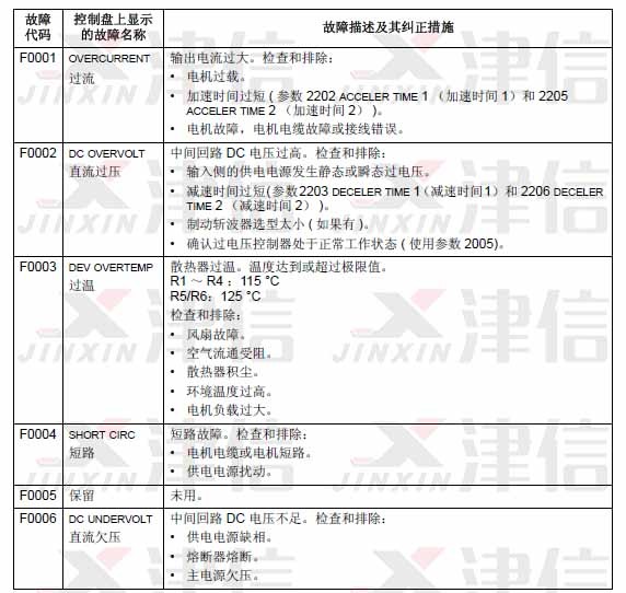 可以通過MENU/ENTER鍵來清除故障信息。如果故障依然存在,故障信息會在幾秒鍾後再次出現。此時需要根據故障代碼來進行相應的檢查和采取應對措施。