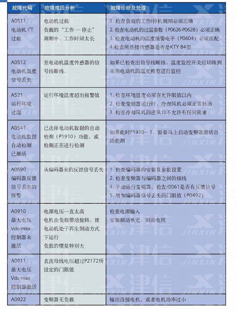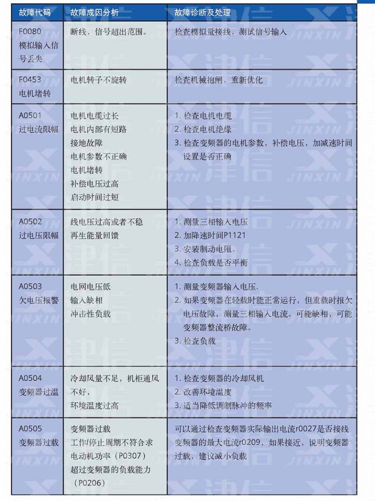 二、F0003欠電壓,F0004變頻器過溫,F0005變頻器過載,F0011電機過熱,F0022功率組件故障,F0041,F0042