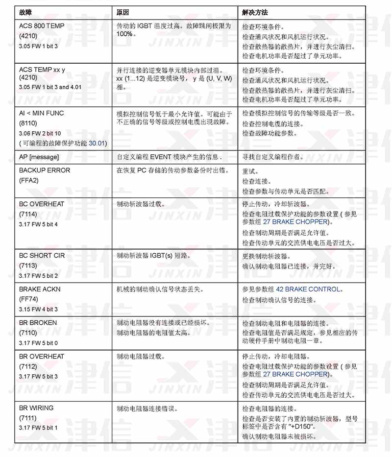 ABB ACS800變頻器在出現故障時,在控製盤顯示器中會顯示警告或故障信息提示信息,大多數警告和故障原因可以利用這些信息識別出來並給以排除。