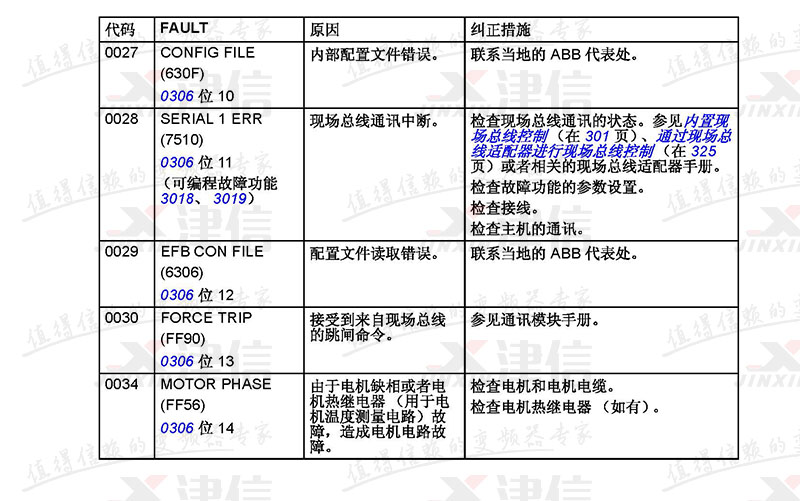當故障發生時,可以通過ABB ACS355變頻器麵板了解當前故障的故障代碼,並針對相關故障代碼來進行故障排查和維護。