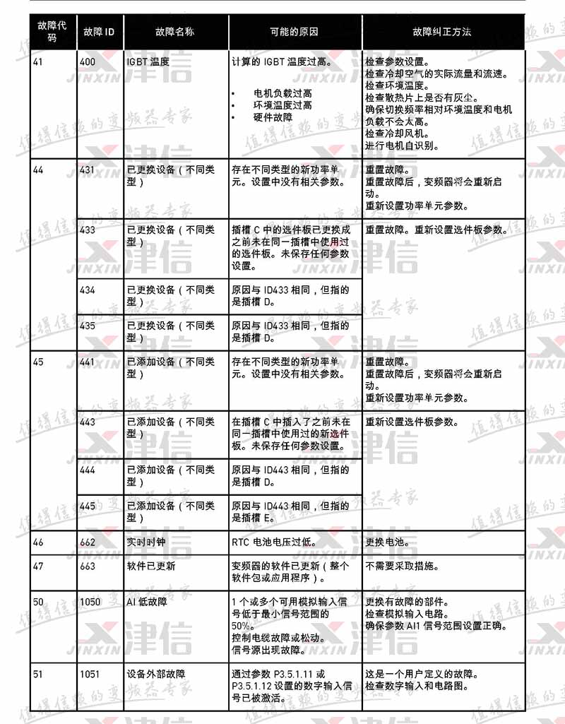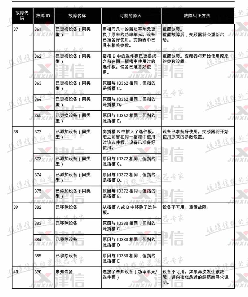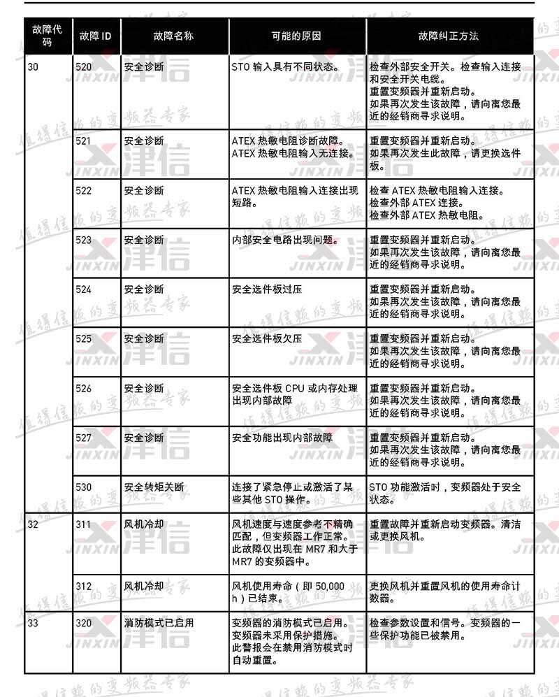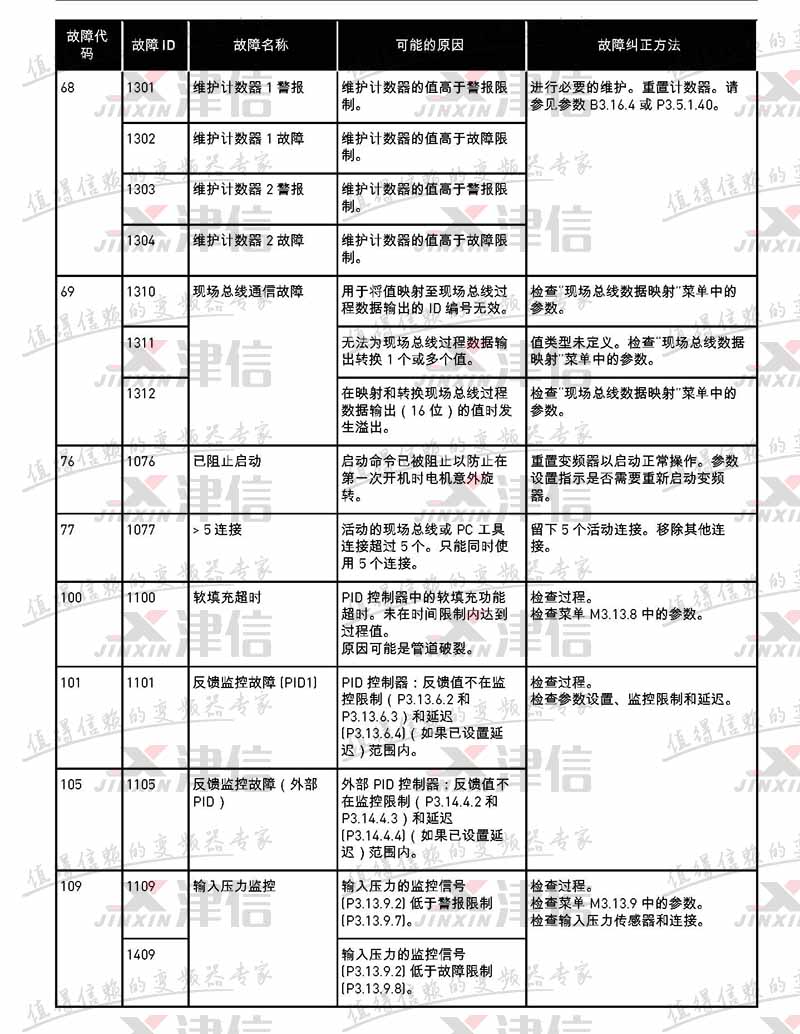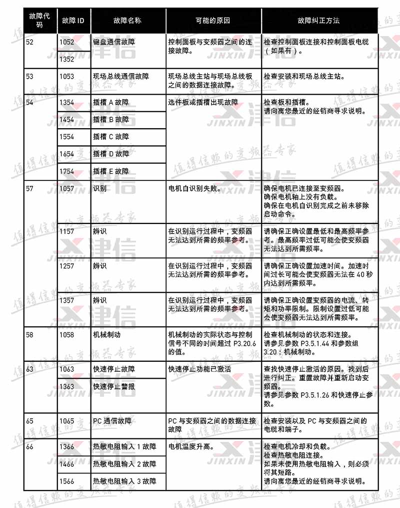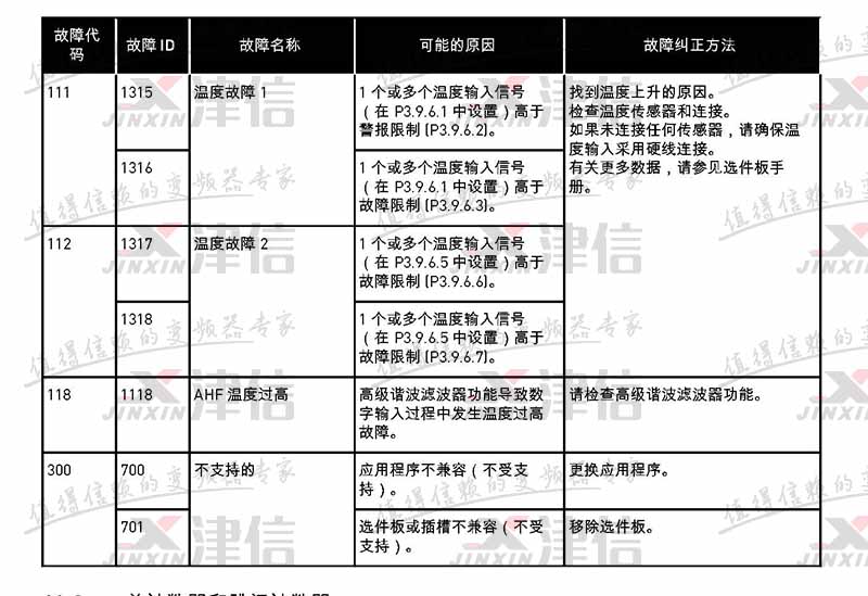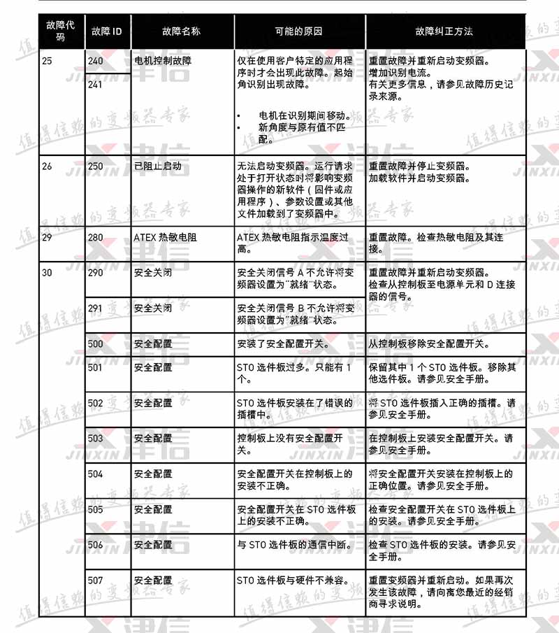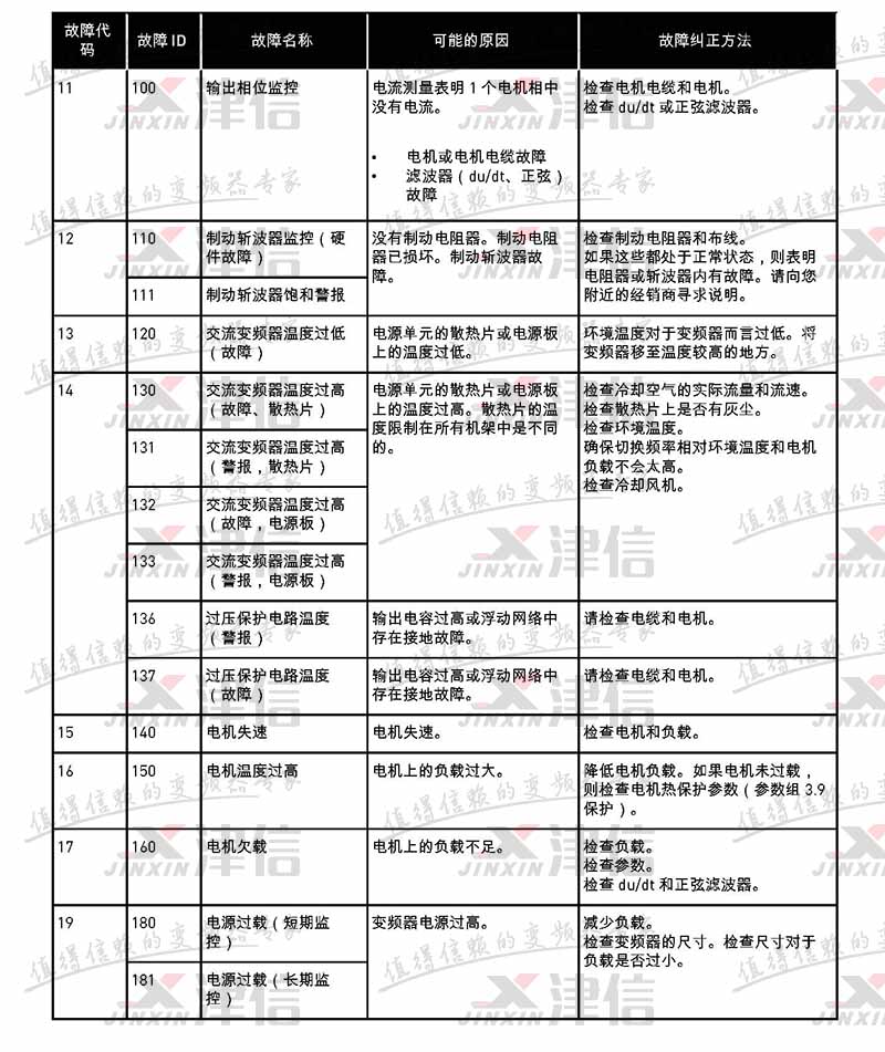 故障代碼 | 故障 ID | 故障名稱 | 可能的原因 | 故障糾正方法 |