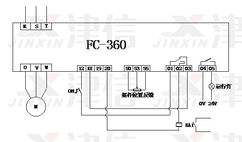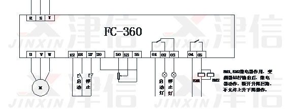 放線過程中,FC360根據反饋位置與預置位置進行PID調節運算,確定電機的轉速與轉向。當出現斷線情況,擺杆由於重力作用將下落,位置反饋值會超出設定的允許範圍。如果將變頻器的繼電器1的輸出功能設為“反饋值超出範圍”,這時繼電器1就會動作。根據接線圖1,繼電器1動作時,端子01/03將斷開,斷開自動運行控製回路,變頻器將會立即停止輸出,同時端子01/02將閉合,將報警信號送給上位機。