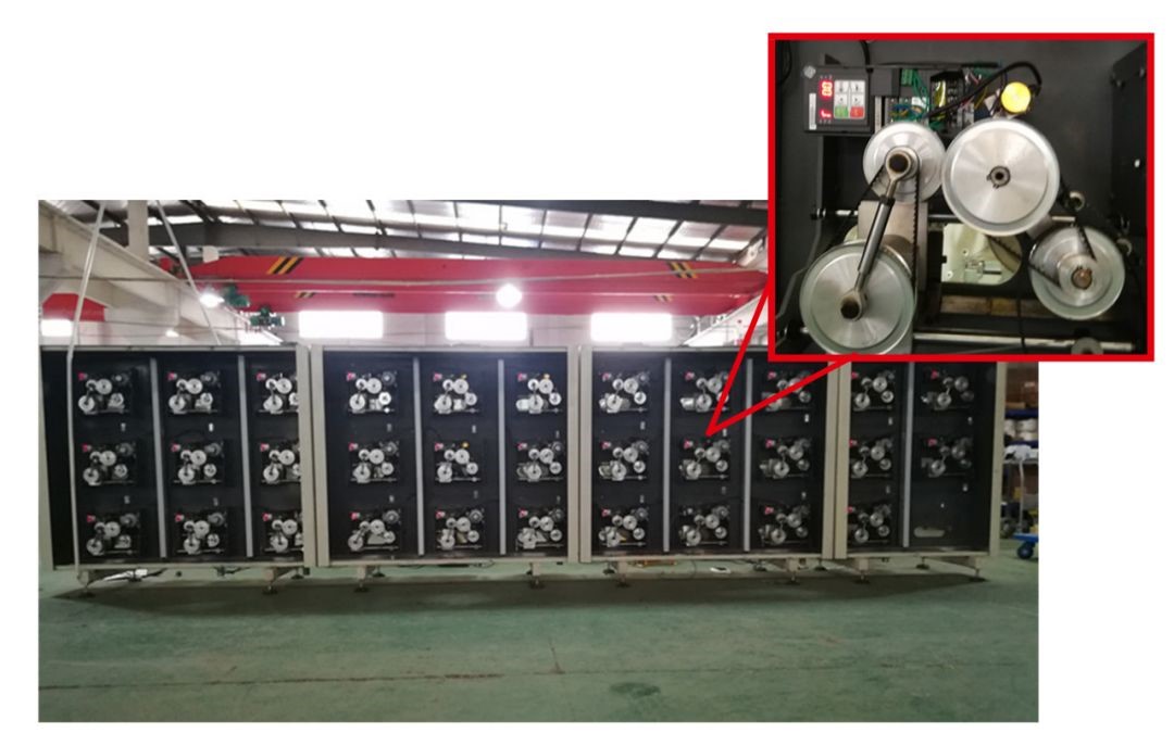 老式金拉線分切機分切速度慢 ,分切後的成品收卷用同一台電機實現,1個電機帶動60個卷軸進行收卷,具有如下幾大缺點: