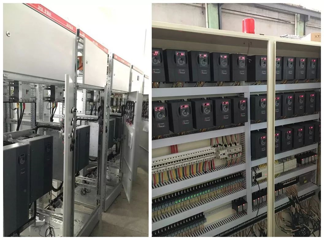 外加空壓機、羅茨風機等。整線配備電機200餘套,裝機容量超過1600 kW,可見變頻器在節能上大有作為。