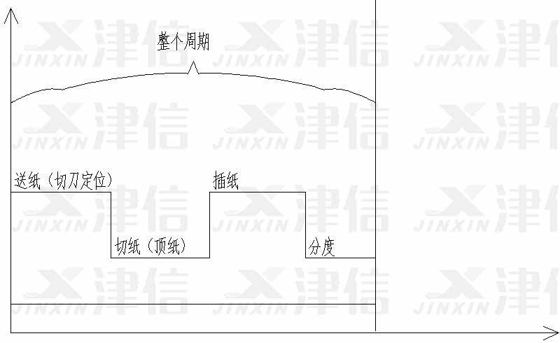 主軸每旋轉一周要完成上述一個循環的動作。高速伺服插紙機的主軸轉速為150轉/分,每個工作循環周期的時間為400ms。