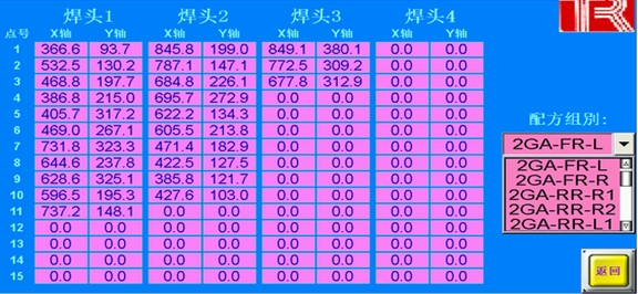 因設備所焊接的門板多達十幾種,而每個門板的焊接孔位置是不一樣的,所以需要使用配方功能,來實現同一台設備焊接不同門板。設備配方所包含的功能如下: