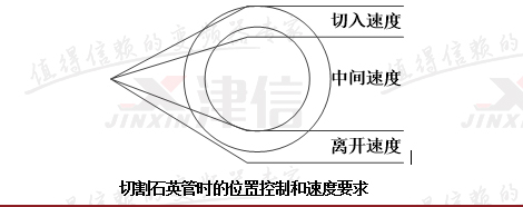 石英切割機有三個控製部分構成:切刀旋轉控製、切刀位置控製和送料位置控製。切刀旋轉控製隻要速度可調即可;切刀位置控製需要在切割石英管或石英棒的過程中控製其位置和不同段內的速度,首先要保證切割產品的刀口質量,同時要提高生產效率;送料位置控製需要每次往前送設定長度的石英管或石英棒,精度要求0.2毫米。