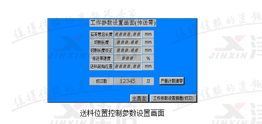 改造係統采用三台Danfoss變頻器和兩塊MCO305,以及一個台達HMI。係統采用RS485通訊。主機旋轉采用4kW變頻器直接拖動,通過HMI直接設定其運行頻率。送料位置控製參數如下圖所示。這些參數在變頻器第19組參數開放出來,之所以采用HMI,主要是為了方便用戶進行操作。